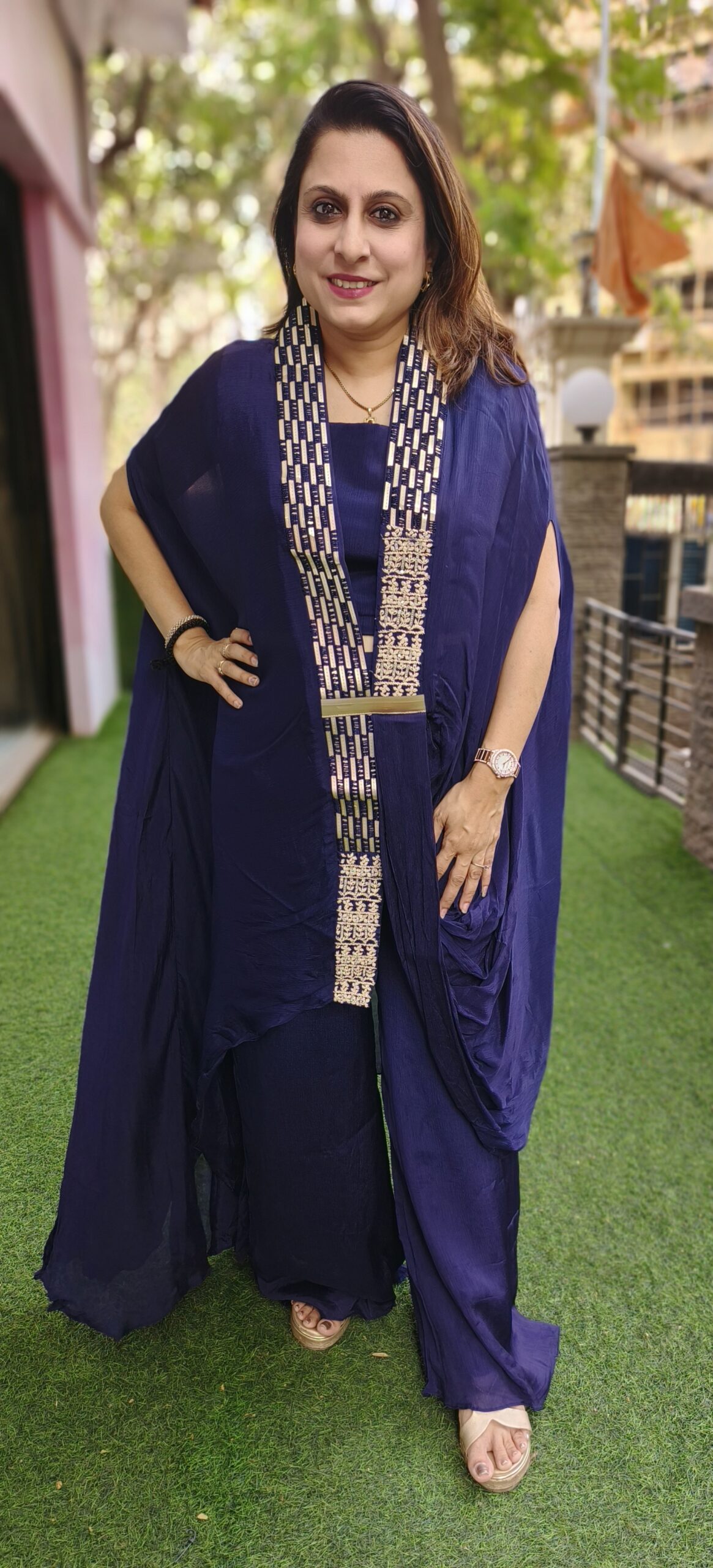 Drape style indo western Mighty Blue