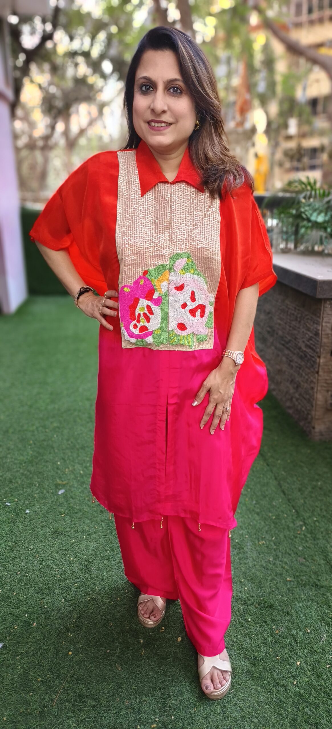 Dual shaded indo western Orange & Red
