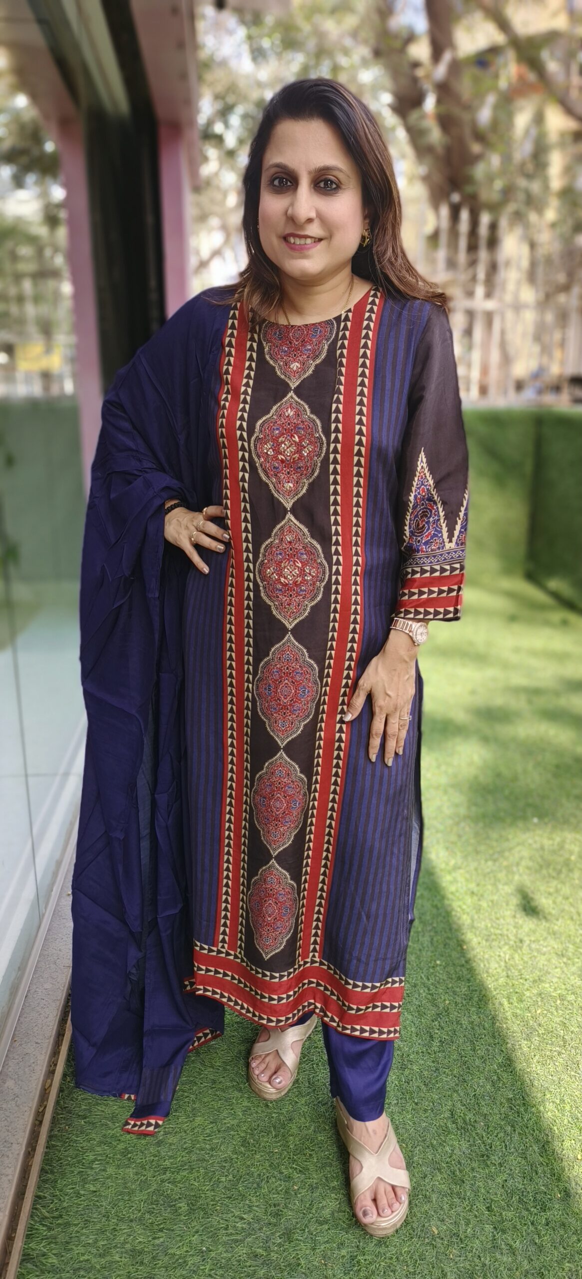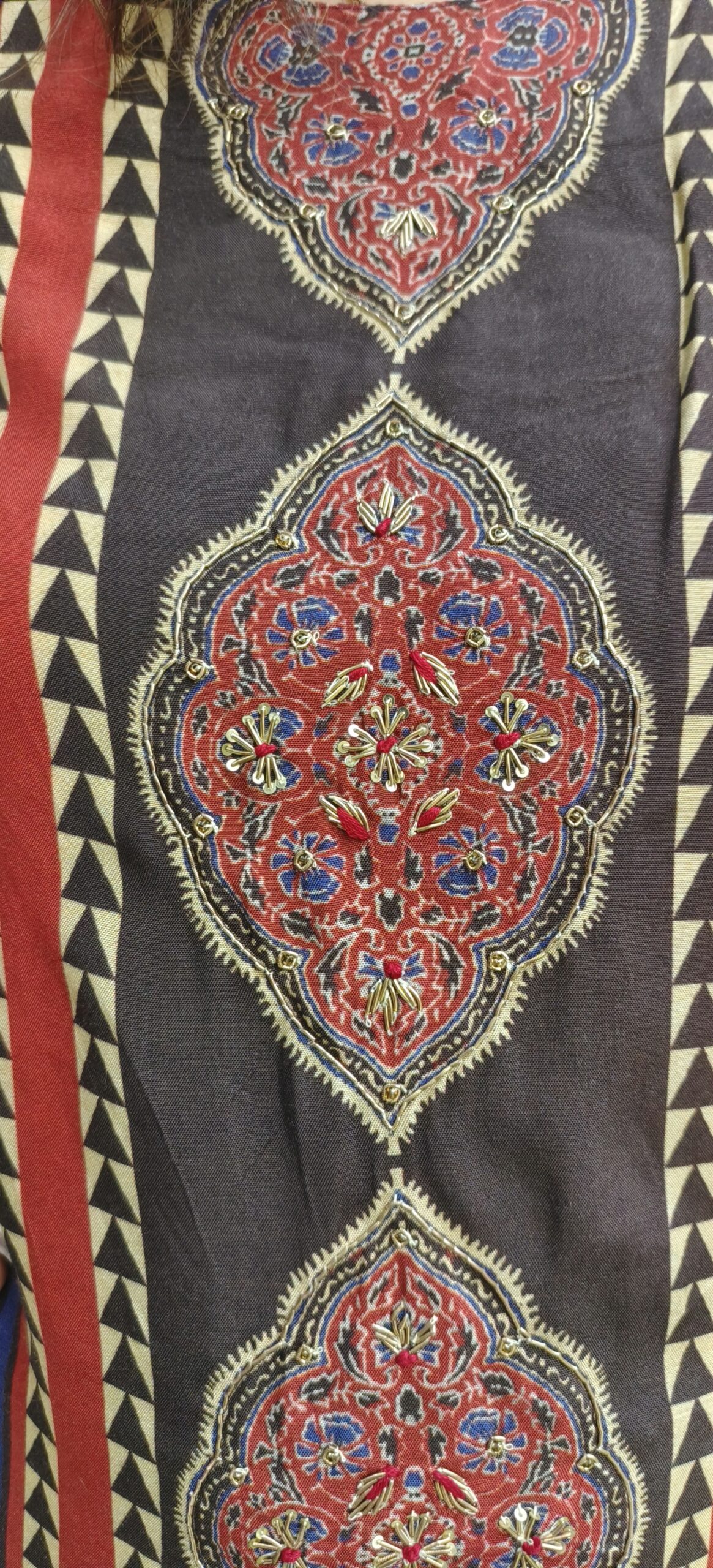 a lovely pure muslin falling fabric with a stunning print. A standout print along with an attractive colour scheme makes this piece stand out. Delicate highlights are done on the buttas