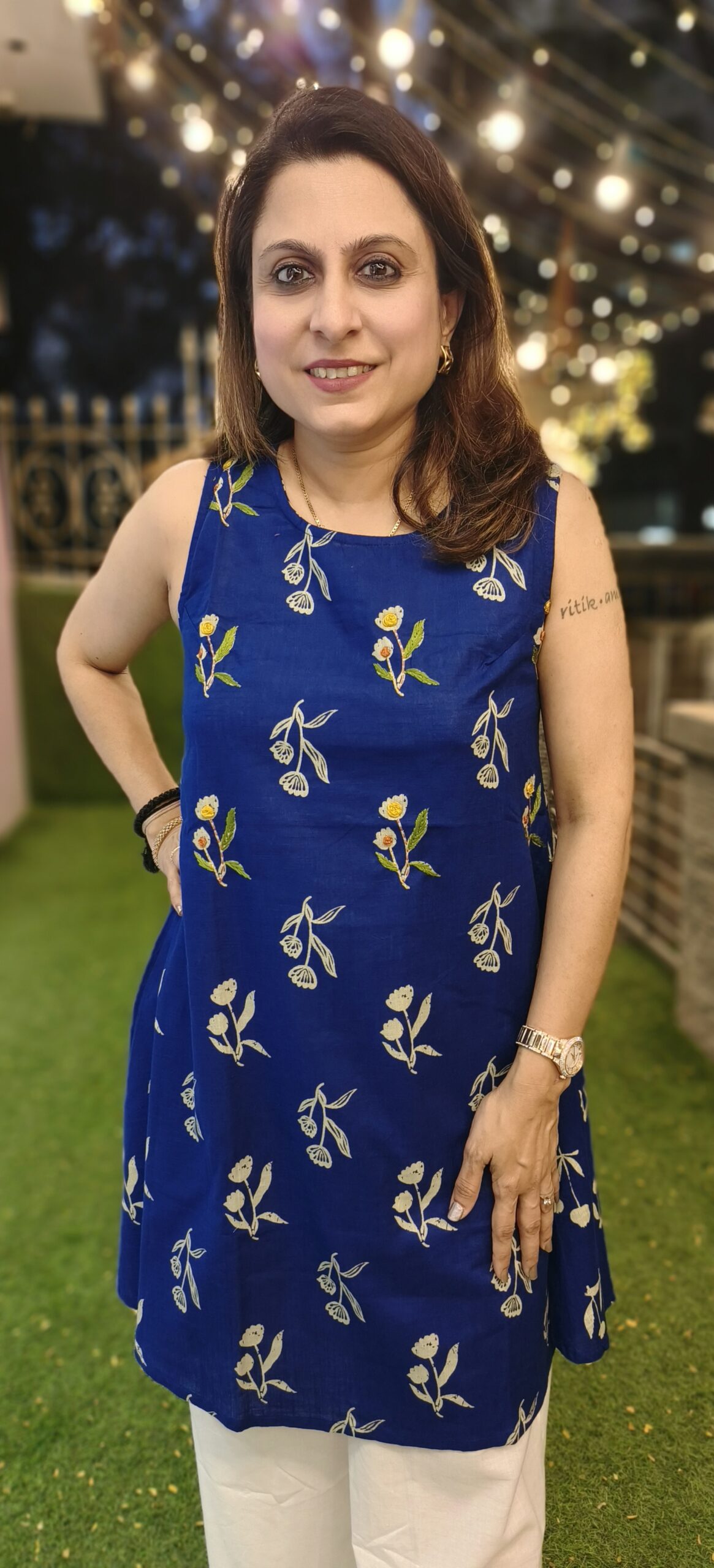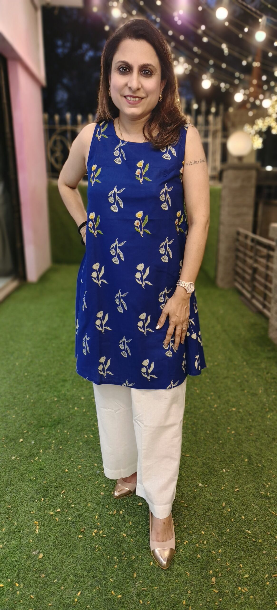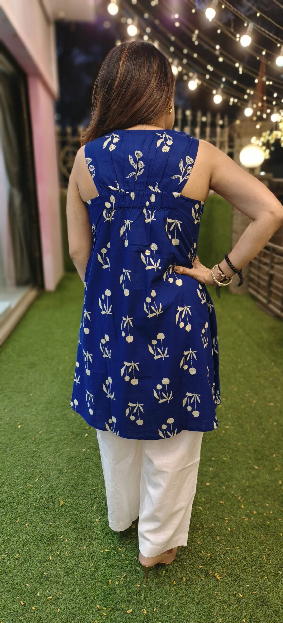 a smart pant set in pure cotton without sleeves and a racer back with elastic. 2 beautiful colours to choose from, this short length top is paired with wide bottoms.