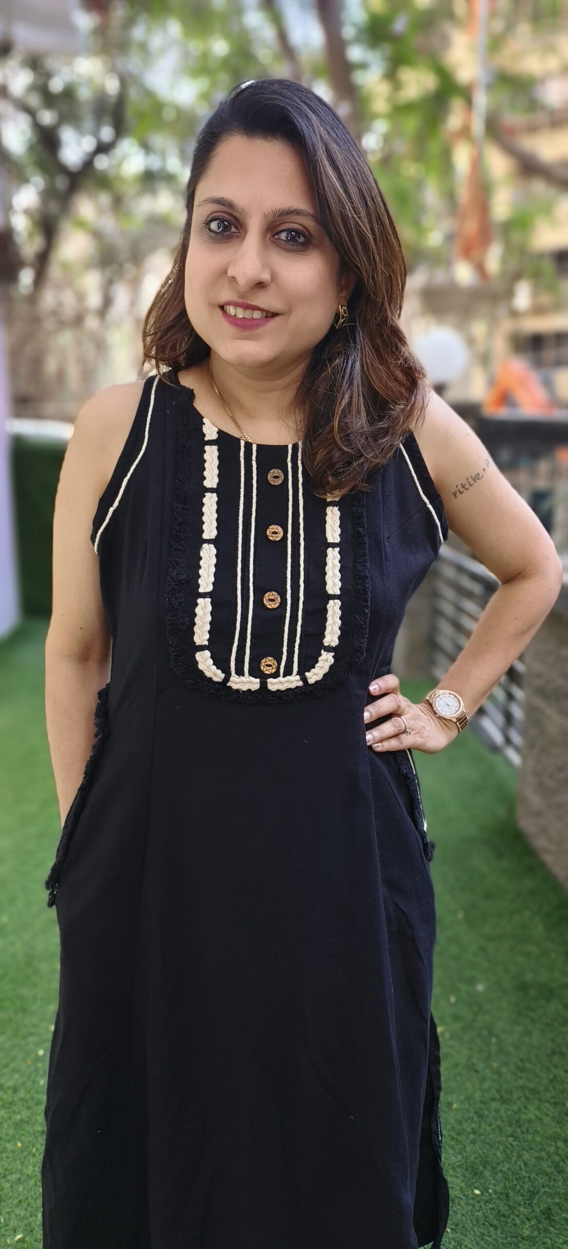 The fit is an A line with side slits and the neck line has buttoning and lacing on it. 3 gorgeous colours to choose from. Black, green, lilac